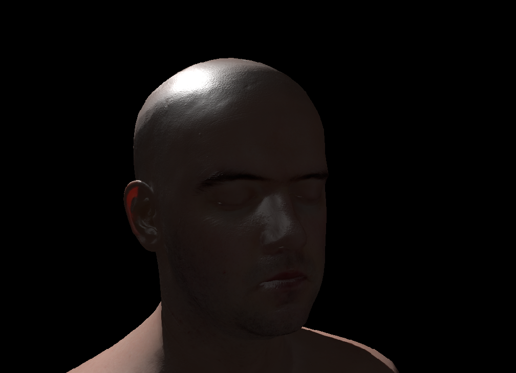 Rendering human skin realistically poses the challenge of solving subsurface lighting sufficiently correct. This challenge is quite diffcult for skin due to its slight transluceny. This causes light entering the material to be scattered within and travel relatively long distances before exiting again. This distance then corresponds to more than a pixel's width of the final image. In this case the effect of subsurface scattering cannot be approximated with a simple BRDF like the Lambertian BRDF. Thus another way to incorporate subsurface scattering is required and multiple ways of solving the problem have been proposed. One of these algorithms is subsurface scattering which has the advantage of being relatively simple to implement but is also less performant than screen space [NP13]D. Neubelt and M. Pettineo. Crafting a Next-Gen Material Pipelnie for The Order: 1886, 2013